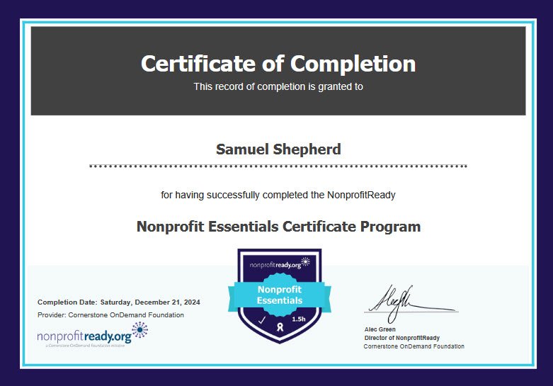 Mr. Shepherd earned four unit awards, individually; he has earned seven metals (three awarded twice), four ribbons, American and German parachute (wings) badges, and nine other awards, including the ROTC  Recon badge, with 13 letters of commendation. March 14, 2023 Mr. Shepherd suffered a stroke, nearly ending his life twice that night. another stroke Again in July 2023. Since then he has been diagnosed with Dysarthria (trouble speaking). Samuel Shepherd was an EMT (Emergency Medical Technician) for a year and a Half With the local Forsyth rescue squad 1990-1992, and served seven years in the military as a Combat Liver Saver, 1993-1999. He Served as a project coordinator 1993-1996, a military intelligence operator 1993-1994, an Information Technician 1995-1999, and various leadership positions, 1993-1999.