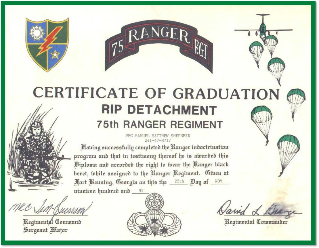 Mr. Shepherd served in the U.S. Army from June 1992 to June 1999. During this time, Mr. Shepherd served with Charlie Company, 1st Battalion, Ranger Regiment, JSA Scout platoon, UN-JSA Panmunjom, Korea, Alpha Company and Headquarters Company of 2nd Battalion, 505 infantry Regiment of 82nd Airborne Division. While a member of Alpha Co, Sgt. Shepherd lead a six-man Recon team (1996-1997). Mr. Shepherd has accumulated 51 parachute jumps from four fixed-wing and Four rotary-wing aircraft and numerous Air-assault missions.
